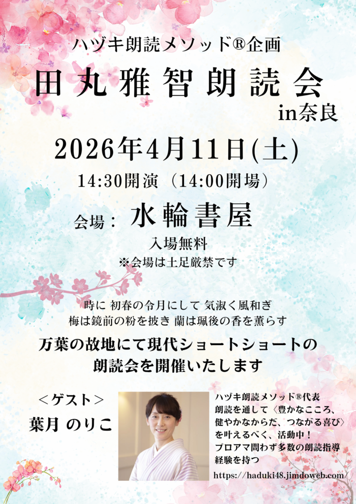 【ひと言】万葉の故地にて現代ショートショートの朗読会を開催いたします。